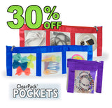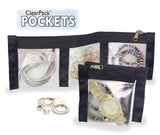 Three roomy pockets secured with one interlocking zipper. ClearPack Pockets fold to a compact size for easy packing.